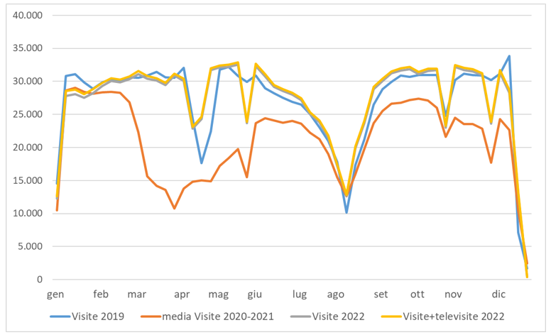 Nel corso del 2022, il tasso di erogazione delle televisite ha avuto un andamento più regolare rispetto agli anni precedenti (Figura 1)