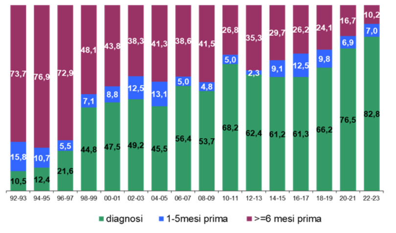 Figura 5. Late Presenter, Advanced Hiv Disease, AIDS al momento della diagnosi di sieropositività. Anni 2009-2023